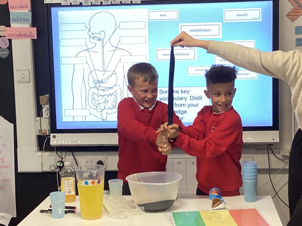 In Science, we explored the digestive system, learning about the different organs involved and their specific roles. One of the highlights was an experiment where we made our own “poo”, simulating the process of digestion and mimicking how each organ contributes to breaking down food. It was a fun and messy way to understand how our bodies work.