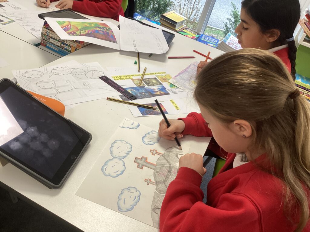 We had a very creative morning on Friday. The class produced some fantastic pieces of art work linked to the Easter story. We used this time to practice our chafing skills which we learnt in our arts fortnight and the end results were tremendous. I also want to wish everyone happy festivities to all those who are celebrating this weekend!